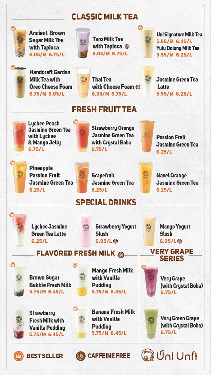 Stop into Uni Uni Bubble Tea Wicker Park for a refreshing bubble tea available in a variety of flavors and textures. (refreshing bubble tea, smoothie, or latte)