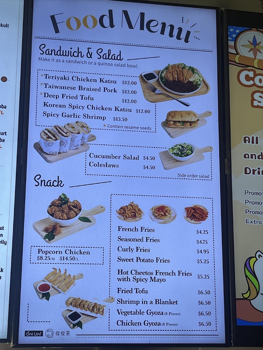 At Uni Uni Bubble Tea Wicker Park, our sandwiches are crafted with fresh ingredients and bold flavors to satisfy every craving. From classic combinations to unique creations, each sandwich is made to order.